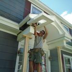 It was then I discovered that water had damaged the porch structure above the columns as well. The crown molding used to finish the fascia on the eaves doubled as a gutter. Though the top of the molding was capped with metal flashing where it wrapped around the porch, it looked like water had still managed to collect there and leak into the short box beams that sat on top of the columns and supported the porch roof framing.