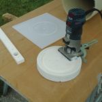 I started by gluing together 1-foot-square sections of 3/4-inch-thick PVC trim to make 1 1/2-inch-thick stock. Then I used a jigsaw to cut out a pair of round plugs that matched the inside diameter of the top of the columns. I fastened the plugs to the columns with screws.