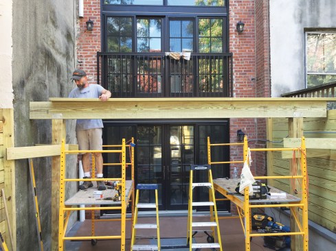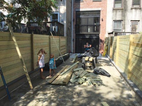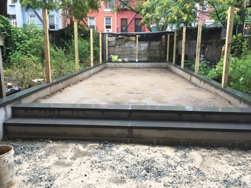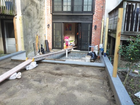 All materials had to be transported by hand from the curb at the front of the house to the backyard through the brownstone townhouse.