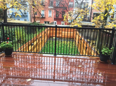 We hired a subcontractor to install the deckâs iron railing, which matches the Juliet balcony rail we had installed during the renovationâs first phase (we had hoped to reuse it, but the fabricator was unable to incorporate it into the new railing).