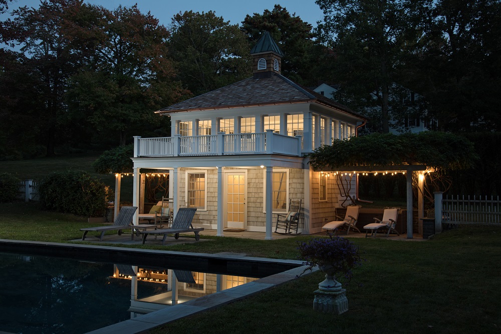 My client–who is also an architect–had big plans for his small, single-story pool house. It was in decent-enough shape with a workable bathroom and kitchen, but it mostly served as a utility room to store pool furniture and supplies. To provide an informal area to relax and enjoy this backyard retreat, he wanted to add a second floor with an attached deck.