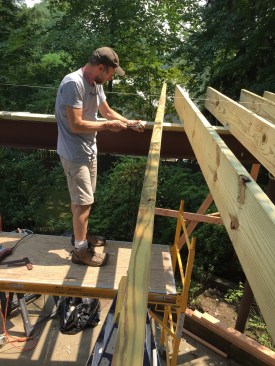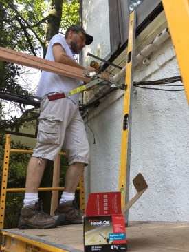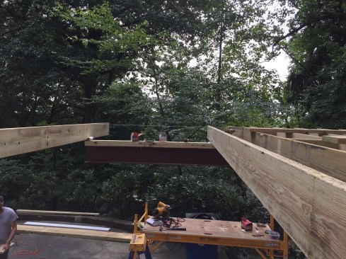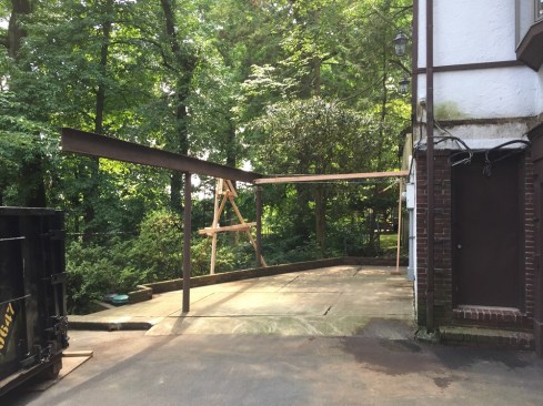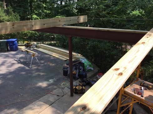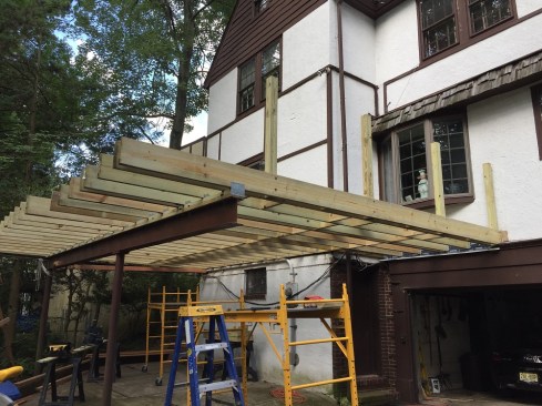 Once we’d taken care of the problems with the ledger and the beam, the rest of the deck installation went smoothly. We were now able to fully enjoy one of the very big pleasures of working in the suburbs, away from the congestion found in Hoboken–we had a driveway to park in each day.