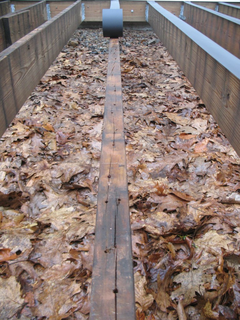 After we’ve removed the old decking and pulled out any nails or screws and before installing the joist caps, we scrape the top of each joist with a block of hardwood or scrap decking. Cutting a 45-degree bevel on one end of the block makes it easier to knock off any caked-on debris. Since we don’t always find all of the fasteners on our first denailing pass, scraping the tops of the joists with the blocks gives us a second chance to find any nail stubs we missed.