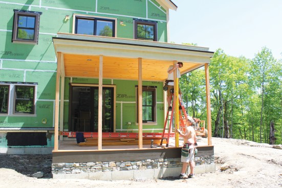 The porch fascia, posts, and eaves were trimmed with Boral TruExterior trim, which is made with fly-ash, a coal combustion by-product, mixed with polymers.