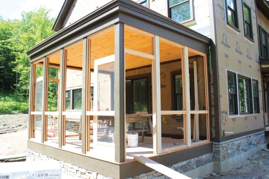 Sometimes, a screened porch is an afterthought, a conversion of an open porch or a deck in an attempt to extract a little more outdoor living during the warmer months while keeping sun, rain, and bugs at bay. In this case, though, the screened porch was part of the original design of a 6,000-square-foot rural Vermont home and was completed simultaneously with the rest of the project. In addition to the three-season porch off the home’s dining room on the lower level, there’s a rooftop deck off the second-story master bedroom, above.