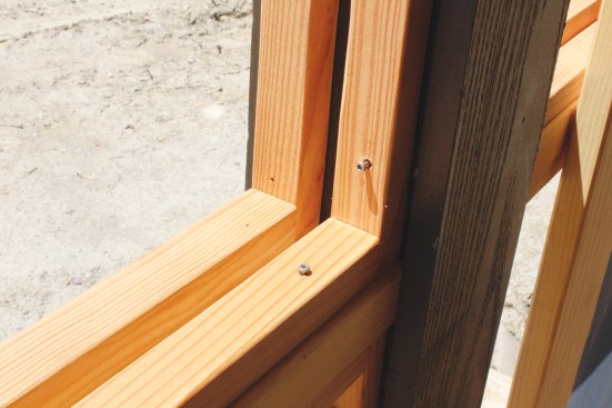 Fixed (on the exterior) and removable (on the interior) red-cedar stops were added to the openings in preparation for the aluminum screen panels.