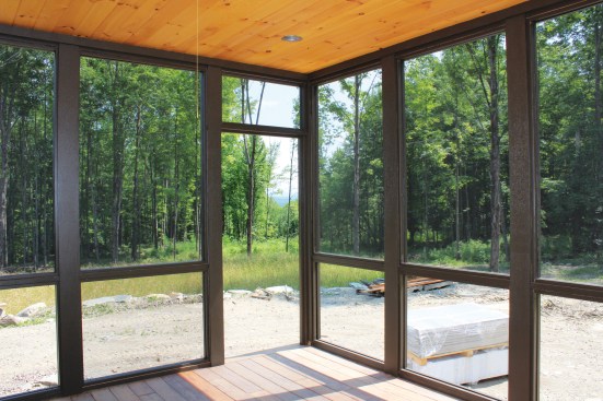 In a Vermont home surrounded by woods and meadows, a screen porch is essential for keeping bugs at bay during the summer months.