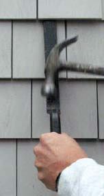Figure 3. A gentle tap forces the clapboard down, leaving the nail head proud of the surface so it can be gripped with wire nippers.