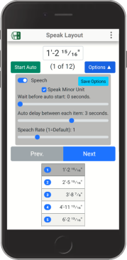 The app will also speak the layout measurements to you. If you need both hands to do the layout, just start the list speaking and throw the phone in your pouch. You can make adjustments so it works for you.