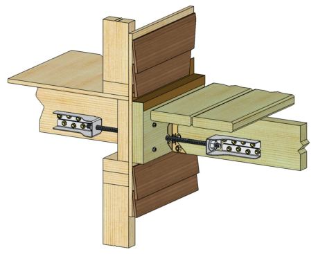 None are simple to install and all require access to the house’s floor-joist system — not fun if you’ve got a finished floor and ceiling to deal with. Simpson’s bracket, the DTT2, takes a 1/2-inch-diameter machine bolt and USP’s DTB-TZ bracket can take a bolt or threaded rod. For these brackets, the manufacturer’s details show the house and floor joists in line with each other. There are alternative details that allow these brackets to work when the ledger is parallel to the joists, but it’s up to the local building inspector whether or not to accept that installation (Structure, January/February 2012).