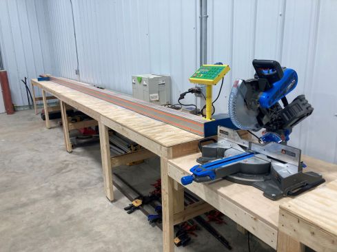 Throughout the design and assembly phase, material lengths are optimized for cuts. This is possible on traditional sites but is easier and more effective in a controlled environment. The automated TigerStop cross-cutting system that we’ve invested in for our miter saw saves around three hours of cutting per deck while producing consistently sized parts. We were able to find a 20-year-old pre-owned unit for about $6,000. It has software to get the most out of the material on hand and can make suggestions based on material cost, length, and finished size.