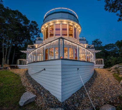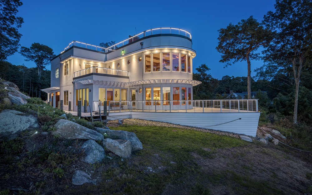 Though permanently moored to a bluff overlooking Connecticut’s Niantic River, this 4,400-square-foot three-bedroom home has the look of a vintage steamship about to embark on its next voyage upriver. The project–a collaboration between the homeowner and general contractor Jonathan Laschever–was one of the first-place award winners in NADRA’s 2017 National Deck Competition, thanks in part to the home’s maritime-themed multi-level decks.