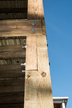 Pilings can be extended with through-bolted lap joints, a common detail on elevated multi-story decks.