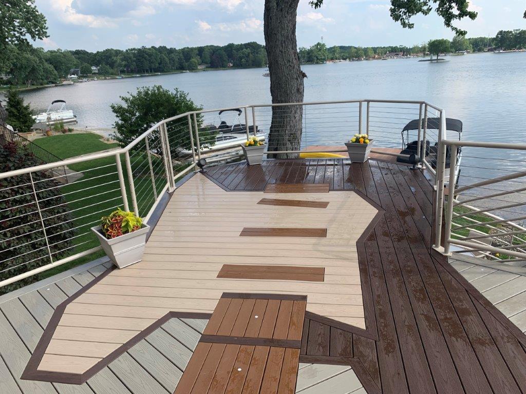 Four different shades of Trex decking were used to create the design.