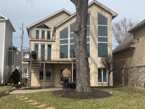 The original deck was supported by steel columns and featured a nice stainless steel spiral staircase and custom-fabricated handrails, which were saved and repurposed on the new deck.