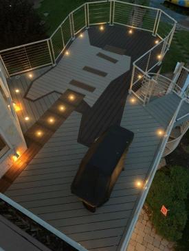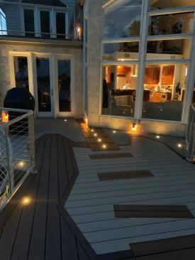 Recessed lights were installed in the decking around the deck's perimeter and in the fret board.