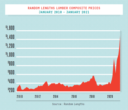 NAHB reports that framing lumber prices have risen by over 300% since April 2020, raising the price of a new single-family home by nearly $36,000. The Random Lengths Framing Lumber Composite measure hit a low of $600 per thousand board feet in November 2020 and peaked at roughly $1,500 per thousand board feet in mid-May.