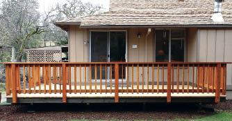 Figure 1. Simpson Strong-Tie’s DTT2Z connectors anchor the guardrail posts to 2×6 joists, but deeper joists would have made the guardrails even stronger.