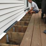 A project we recently completed provides a good example of the kinds of deck frames we typically find in our area, and the fixes we employ. Even though it’s a grade-level deck and the stakes aren’t as high as they would be for an elevated deck in the event of a catastrophic failure, we still followed all the same measures.