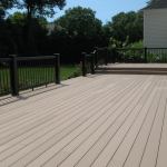 Though the owners routinely maintained the pressure-treated decking and railing by cleaning and re-staining it regularly, the wood showed its age. The splitting and splintering deck surface was unsafe for bare feet. The shanks of the nails holding the boards down had rusted through, so the decking had come loose in places and was cupping and lifting.