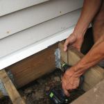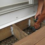 Installing two 1,500-lb. lateral load anchors can be a challenge with a finished basement ceiling inside, but the new 4 X 750-lb. lateral load detail in the 2015 IRC simplifies the process in a retrofit situation like this. We used Simpson Strong-tie’s new DTT1 connectors, locating two within 2 feet of the ends of the deck, and two more evenly spaced along the ledger on each deck level, for a total of eight connectors (four on each deck level).