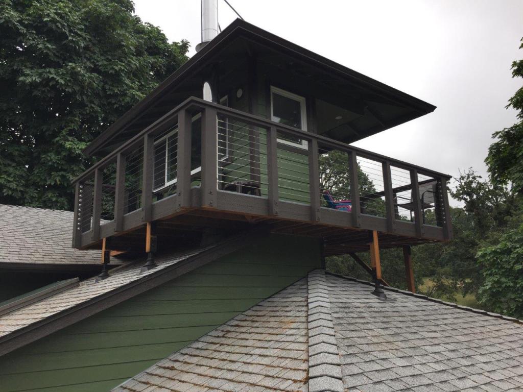 The widow’s walk—a quiet reading room with views of Oregon’s Willamette Valley—and surrounding deck and railing were finished to match the existing house.