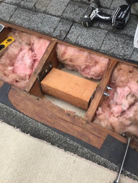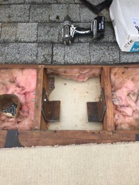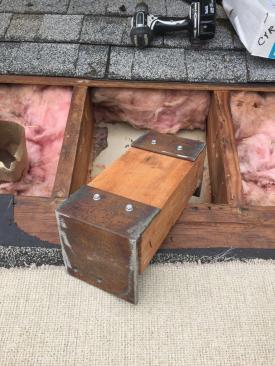At each SkyLift location, the crew opened up the roof sheathing and drilled holes in the framing for a pair of steel angle brackets.