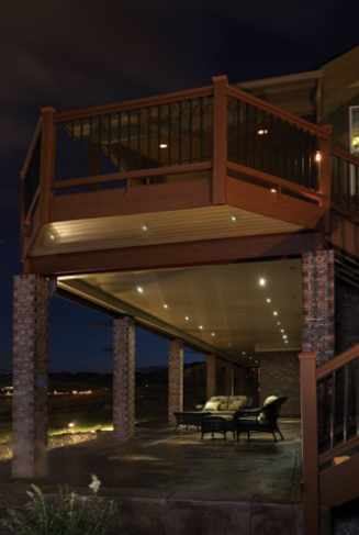 A great deck deserves great lighting, not just a couple of wall-mounted 100-watt floodlights that glare down on the deck — which is almost worse than no light at all.