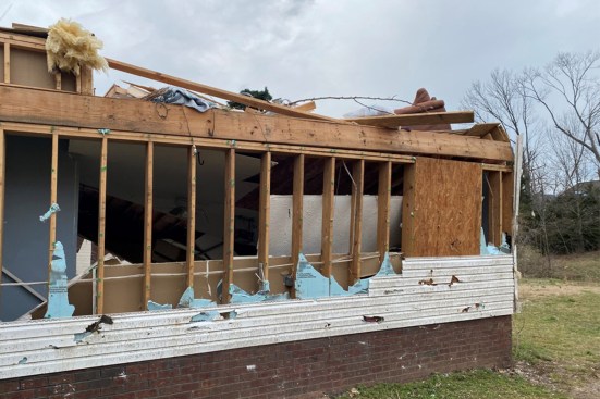 Gable-end wall failures are frequently observed in tornado events when non-structural sheathing is used. Sheath gable-end walls with wood structural panels, such as plywood or oriented strand board (OSB).