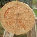 For either design, it’s important to cut the log ends square — a tricky proposition when working with natural logs. To do this, you first find the center of the log’s end by measuring three ways: horizontally, vertically, and diagonally. For each measurement, mark the center. You’ll usually end up with a triangle of dots; the center of this triangle is what you’ll use as the center point. Repeat this at the other end.
