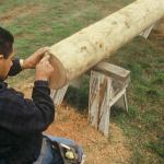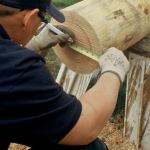 Raw logs fresh from the forest will need to be debarked, which you can do with a power plane, a draw knife, or an adze (Schroeder Log Home Supply, 800/ 359-6614, loghelp.com). Fresh logs cut in spring when the sap is running can actually be debarked using a power washer set at 3,500 psi or higher and a turbo nozzle. This method leaves the smooth cambium layer of the wood intact.