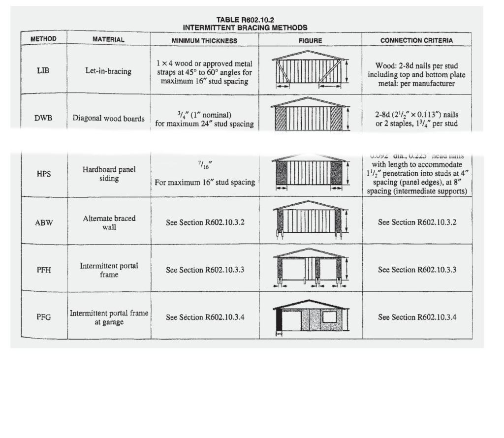 Braced wall lines are required on just about every building to provide resistance to wind and gravity loads, as well as to high-wind loading and seismic forces in areas where these more extreme conditions exist (see “Wall Bracing and the IRC,” Coastal Contractor magazine, July/August 2006). There are many ways to provide the required bracing (see IRC Table R602.10, below). The specific type of braced wall panel in question — referred to as an Alternate Braced Wall, or Method ABW in Section R602.10.3.2 — is one alternative to a wider 48-inch braced wall panel. Method ABW relies on sheathing, fastened to a specific schedule, to transfer loads to required hold-downs. Any significant hole in the panel would interrupt the load path across the sheathing to the hold-down. The very definition of a braced wall panel speaks to the continuity of an uninterrupted panel. To count toward the total bracing requirement, a sheathed segment has to be tall enough to cover the full wall height and wide enough to satisfy minimum strength requirements. Clearly, windows and door openings (really big holes, in other words) are not allowed in a braced wall panel. But are any holes acceptable? If so, how big?