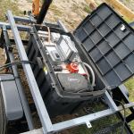 Right now, Mel is reconfiguring the generator. When we built the unit, all of the batteries and hardware went into a single box, which made it too heavy to lift and move around easily. Mel is breaking the components down into smaller modules so that one or two guys can maneuver things around more easily. There are less expensive ways to get power, but none feels as good as plugging into the sun and wind.
