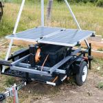 The heart of the system is an Outback 3,500-watt 24-volt DC/120-volt AC inverter (outbackpower.com), which is powered by four 220 amp-hour 6-volt absorption glass mat (AGM) batteries. The batteries are wired in series, which increases the voltage of the system to match the inverter. The batteries are charged with a pair of Kyocera 135-watt solar panels (kyocerasolar.com) and a 400-watt Air-X wind turbine (now called the Air 40, available from Primus Windpower) managed by a Morningstar PS-15 charge controller (morningstarcorp.com). Everything is mounted on a small trailer.