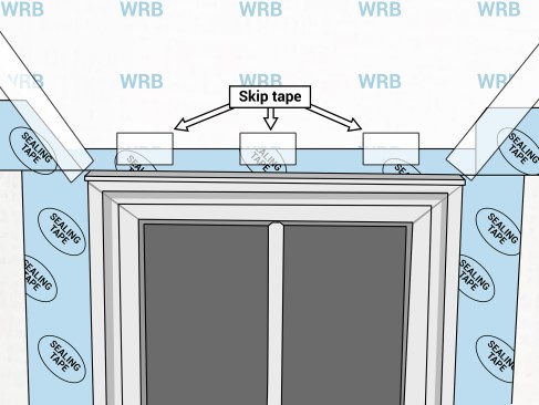 Brush away dust and debris and wipe off moisture from window sills and the WRB (weather-resistant barrier) to improve the adherence of flashing tapes and membranes. Some tapes and membranes won’t adhere in cold weather, so try to find a product that does or be sure to follow the manufacture’s specific cold-weather guidelines. Some cold-weather solutions will include adding primers prior to installing the flashing, so read the instructions beforehand so you’ll have all the necessary materials come installation day.