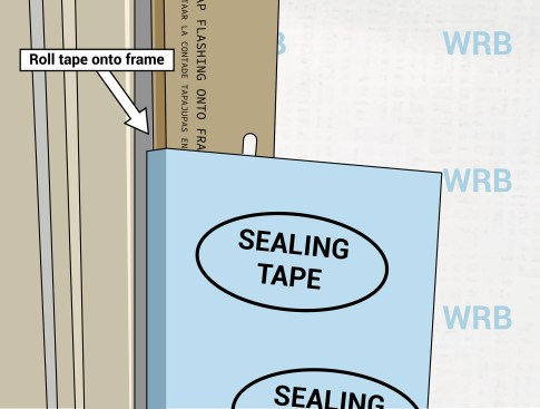In addition to sealing underneath the nailing fins, fins that are not an integral part of the window unit need to be sealed to the frame. The best way to accomplish this is to roll the flashing tape/membrane over the fin and up onto the edge of the window frame.