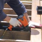 We like the Tiger Claw system because it installs quickly and holds well. When fastening the clips to wood framing, we use the Tiger Claw pneumatic installation gun, which is similar to a metal connector nailer. To avoid having to crawl back and forth across the framing, we put an installer at each end of the deck board, each with his own installation gun. The tool will pay for itself in a couple of jobs, and if you buy enough clips, your sales rep or lumberyard may give you the gun for free (deckfastener.com, $250).