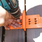 Although we install the bulk of the deck with clips, we use the Camo Hidden Deck Fastening System for borders and inlays; it consists of an installation jig and proprietary self-drilling screws that toenail through the edge of the deck board.