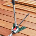 I recently began using the Deckmaster PowerHand, a device that grasps a joist or adjacent deck board to push or pull bowed boards into place. It’s similar to the BoWrench, but is designed so you can use it from a standing position (grabberman.com, $205).