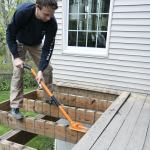 Almost every project involves some kind of demolition. There’s nothing glamorous about this part of the job, so our goal is to get the existing deck out of the way as quickly as possible. We’ve found a couple of prying tools that work much better than crowbars. The Gutster provides excellent leverage for prying apart framing and removing the first couple of deck boards. It will fit over single or double joists and has two pointed “fangs” you can jam into cracks and joints to gain purchase. The tool is ergonomic but heavy enough to split a 5/4 x 6 cedar deck board in half if used in a downward stabbing motion. It also has nail-pulling slots — much like those on a roof shovel — that are useful for quickly denailing joists during resurfacing projects. Since the design of the tool requires that the user stand on the joists while prying up deck boards, we don’t like to use it for board removal — but we use it for everything else. Sometimes we even dig with it.