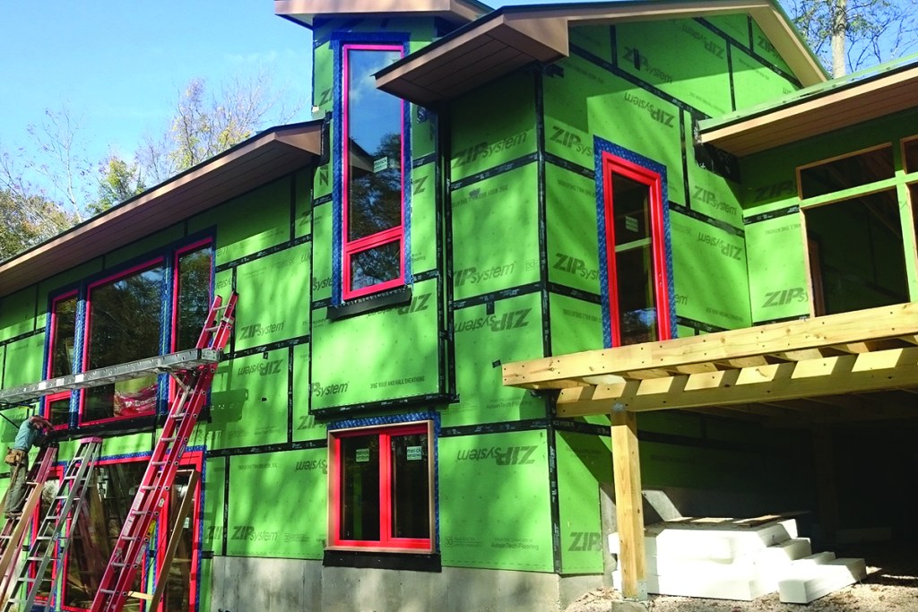Exterior walls are the most difficult places on a house assembly for establishing a water barrier, and a good place to start is not letting them get wet in the first place. To that end, all of the major roof planes had 30-inch overhangs—wide enough to keep much of the runoff away from the walls when there isn’t much wind.