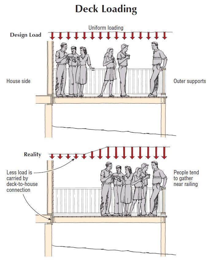 So, the question is, why don’t residential deck-to-house connections fail on a routine basis? There are a few possible reasons.