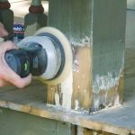 Tooling. After it’s fully cured, the epoxy patch is as easy to shape as joint compound. Wood chisels and a Stanley Surform plane quickly knock down the high spots. A random orbit sander and one or more detail sanders make the patch disappear.