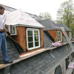 The finished assembly provides a clean-looking transition from the apron to the sidewall step flashing and allows for some flexibility if the shingle coursing doesn’t line up with the dormer. This detail can be used on a variety of siding and roofing types—in this case, stucco-clad dormers with asphalt shingles.