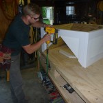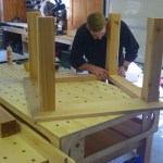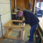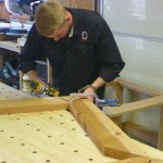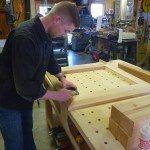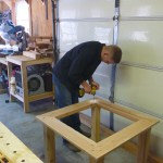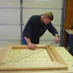 Author assembles the frames on a flat surface, driving pocket screws to secure the corner joints.