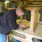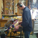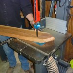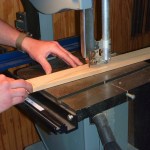 A band saw cuts the arch in each frieze board, and after smoothing the edge a chamfer is added along the outer face.