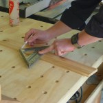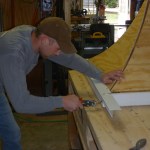 Next the author traces and cuts the rest of the the rafters using the pattern rafter.