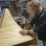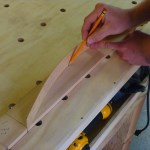To scribe the arch for the frieze board, author uses a batten made from a thin rip of wood.