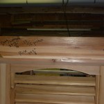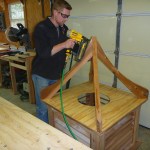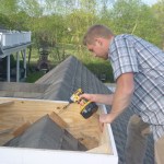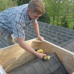 The swooped roof section tops off the assembly. Note, before the roof was permanently attached, insect screening was stapled to the inside of the louvered section.