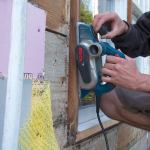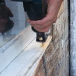 There’s no easy way to extend existing sills by an inch and make them look good, so we decided to trim the old ones flush with the sheathing and then add new stock sills padded out with extensions made from 5/4 PVC trim. We made our rough cuts with a reciprocating saw and cleaned up the sills with a power plane.